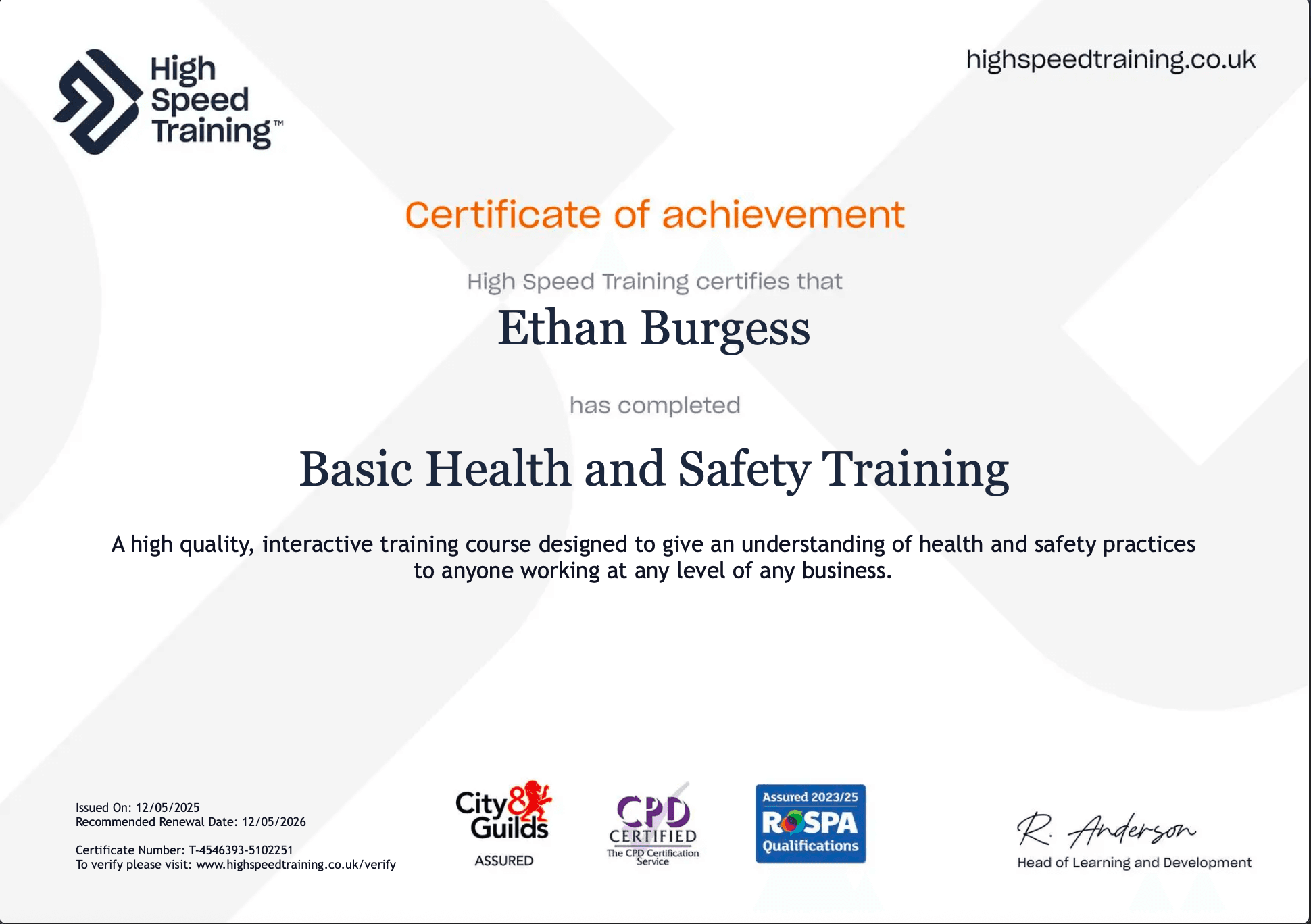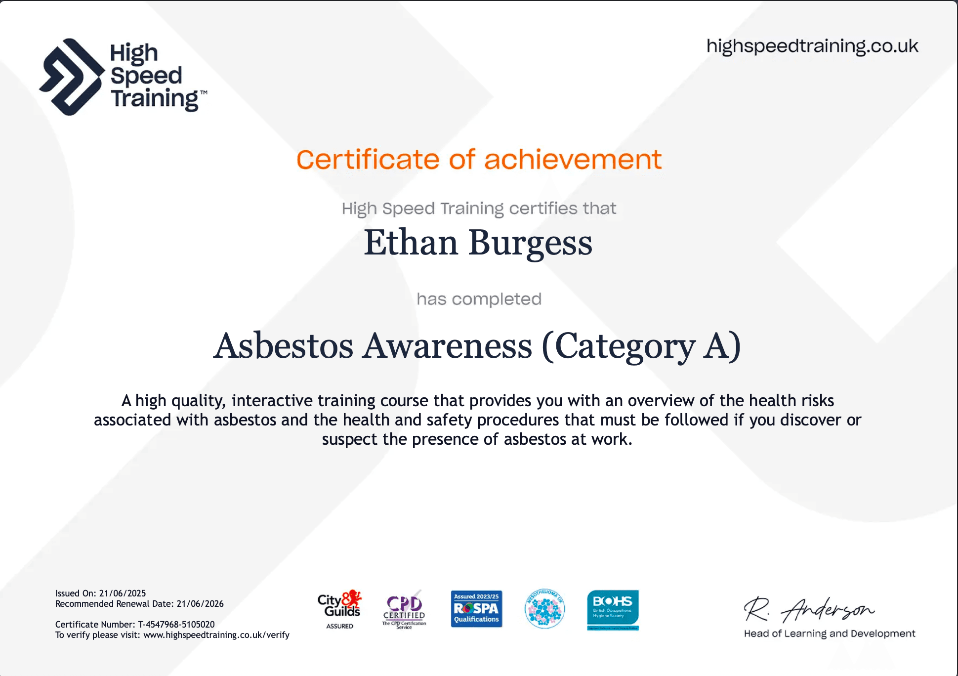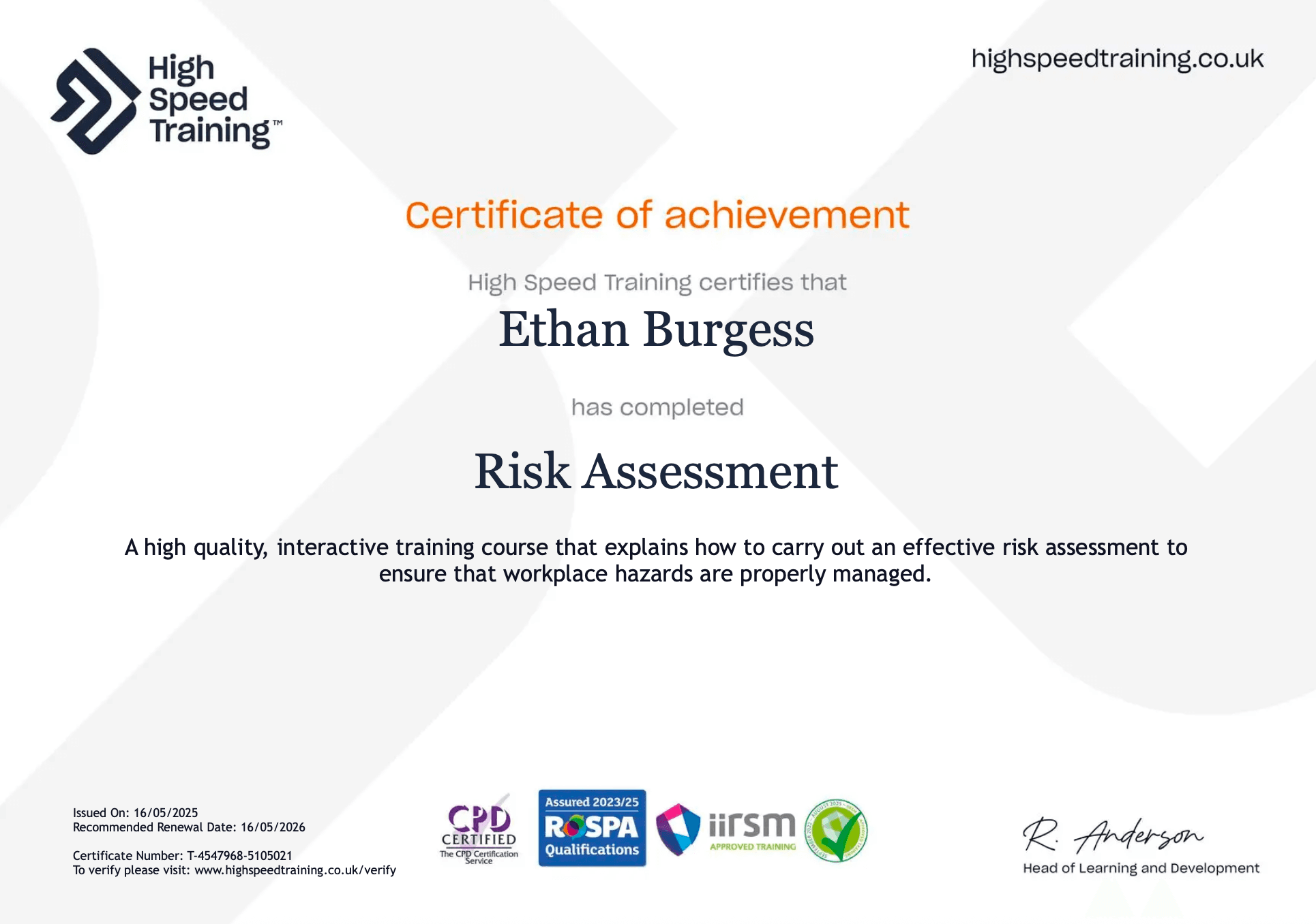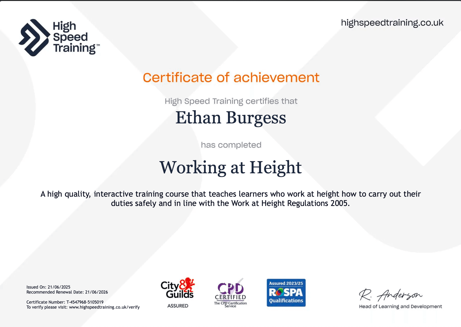 Youโll receive a transparent and competitive quote with a full breakdown of labour and materials. We also provide a detailed risk assessment and method statement to ensure compliance and give you complete peace of mind before any work begins.