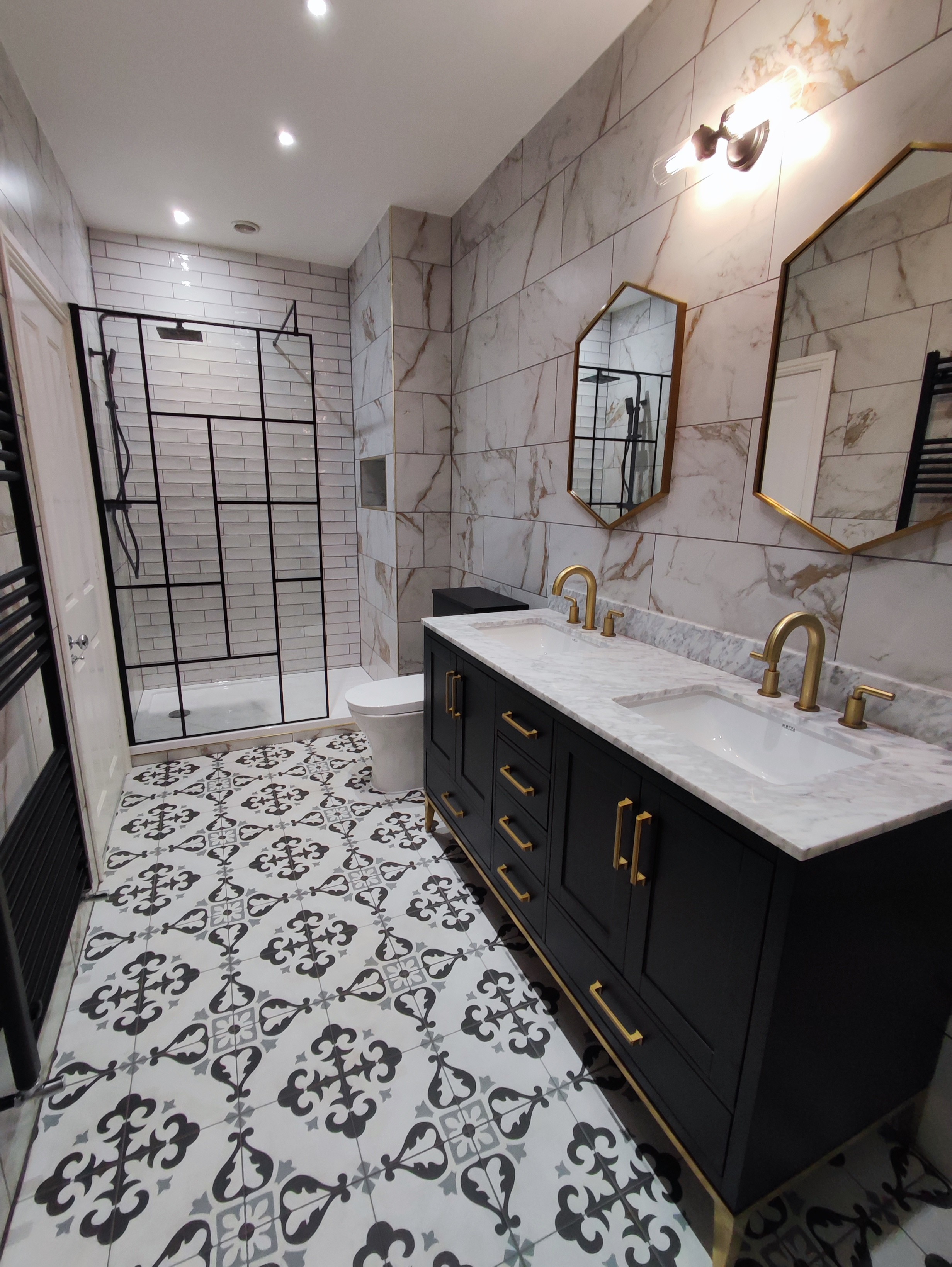 Luxury bathroom redone with porcelain tiles and bespoke fittingsโclient thrilled, booked two more.