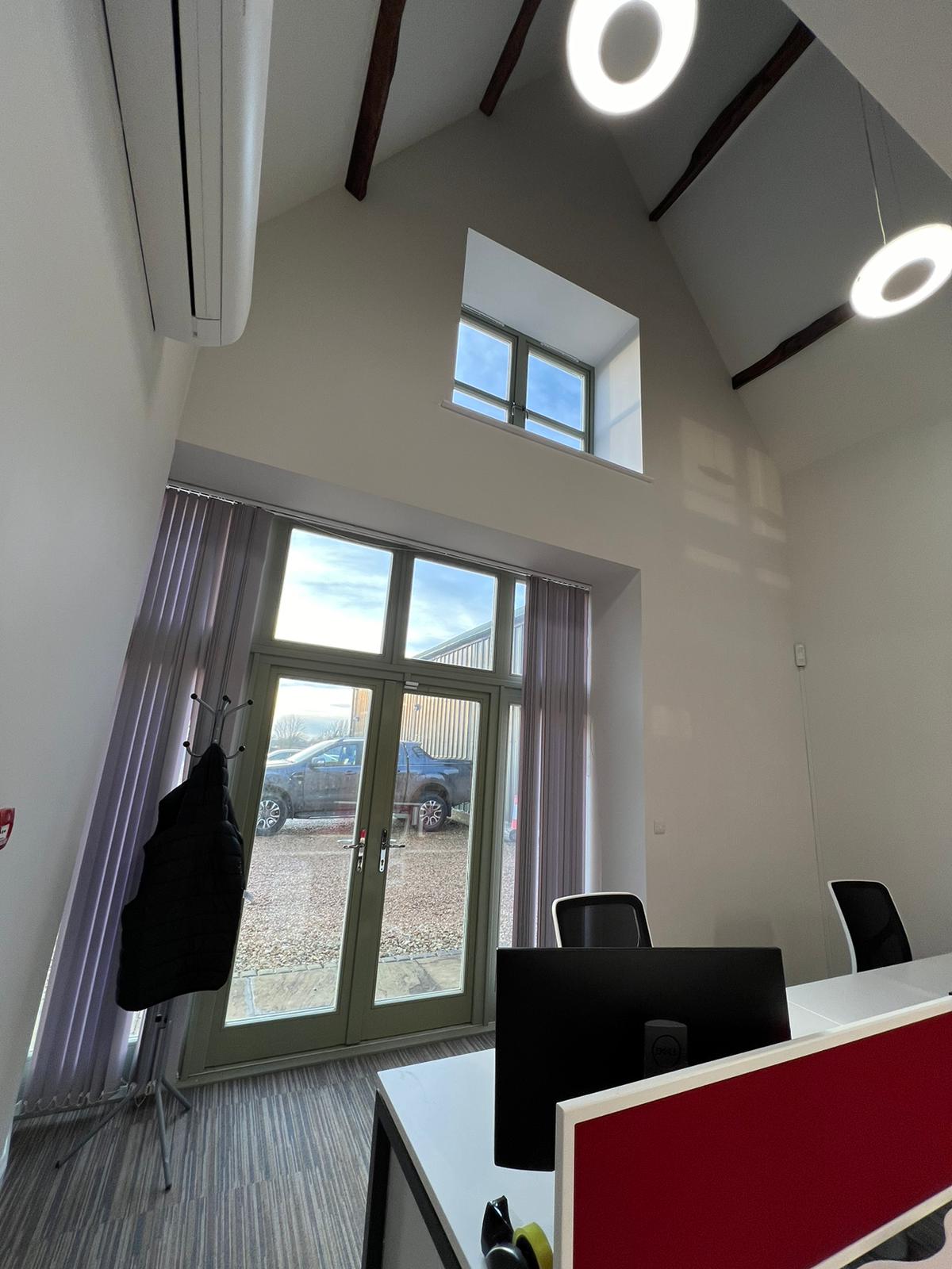 Refurbished barn office completed in 5 days with durable matt paintโclient thrilled with the transformation.
